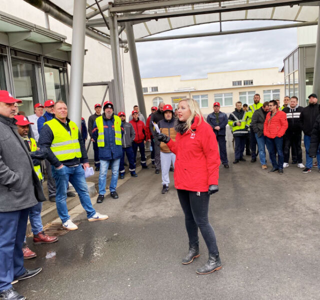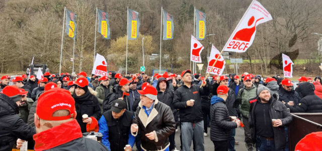 An zahlreichen Standorten haben die Beschäftigten in der Kautschukindustrie vor dem Tarifabschluss am 28. Februar auf ihre Situation aufmerksam gemacht. Aktionen gab es unter anderem bei Pirelli in Breuberg (oben), bei Veritas in Gelnhausen (Mitte) sowie bei Goodyear in Hanau (unten) und in Fulda.