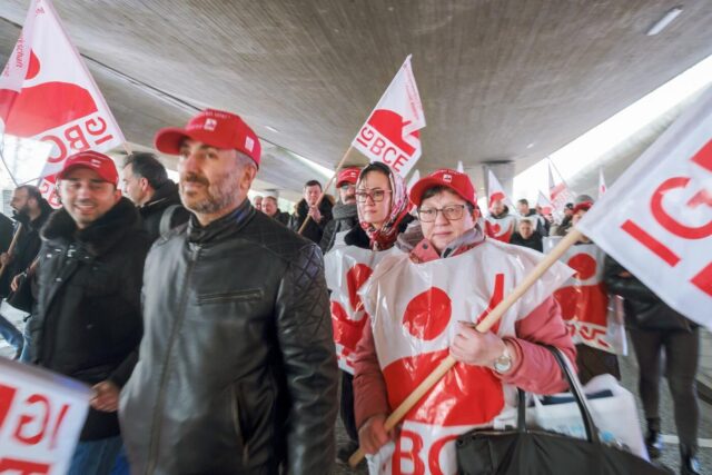 Käppi und Leibchen gehören zu einer ordentlichen Tarifaktion dazu. Erst recht, wenn sie im Winter stattfindet. Diese Kautschukbeschäftigten bekamen bei der IGBCE-Demo in Hamburg auch noch Schutz von oben – von der Bundesstraße 75. Geholfen hat’s allemal: Am Ende konnte die Tarifkommission für sie und Zehntausende andere einen stabilen Schutzschirm gegen die Inflation aufspannen. Mehr dazu hier.