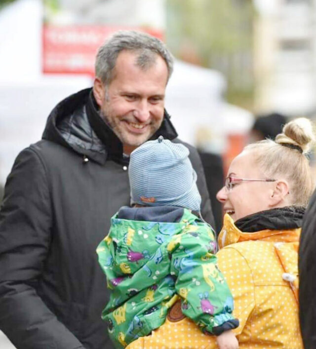 Roksana Müller spricht mit Tobias Schick, Oberbürgermeister von Cottbus.
