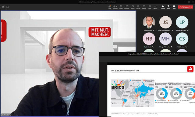In einer Onlineveranstaltung lud der Bezirk Mannheim zu einer Gesprächsrunde zur Zukunft der Industrien im Rhein-Neckar-Raum. Matthias Opfinger gab den Betriebsrätinnen, -räten und Vertrauensleuten einen Überblick zum Thema Industriestrompreis und Standortsicherung. Außerdem warb die IGBCE für ihr Konzept einer durch den Staat finanzierten Brückenstrompreislösung zur Standort- und Arbeitsplatzsicherung der energieintensiven Branchen.
