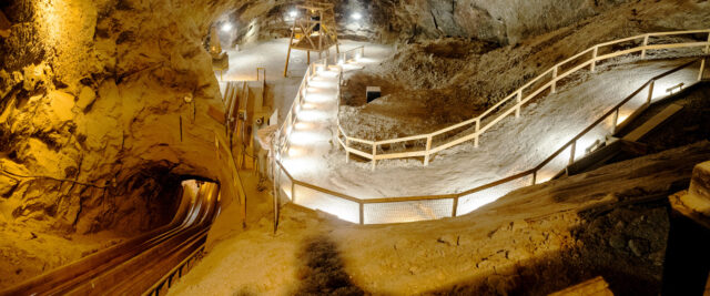 Knapp 60 Meter weiter oben liegt das Besucherbergwerk. Es gehört zu den meistbesuchten Attraktionen in der Region. Jedes Jahr kommen knapp 400.000 Besucherinnen und Besucher. Die Beliebtheit rührt auch daher, dass Neumayer und die anderen aktiven Bergmänner im Wechsel einen Teil der Gruppen höchstpersönlich durch den Stollen führen.