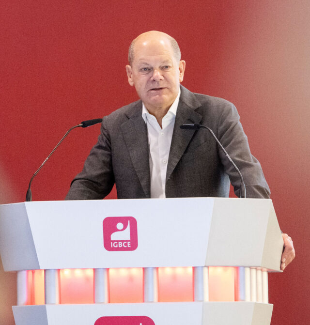 Kanzler Olaf Scholz sprach vor dem IGBCE-Beirat über die Pläne der Politik.