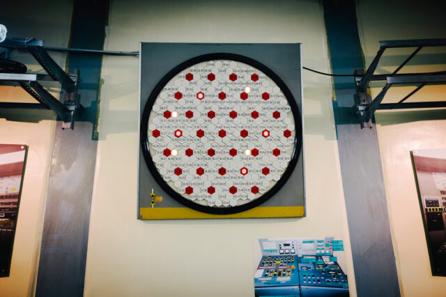 Wie das Herz eines AKW ausschaut, möchte Schindel jetzt zeigen. Über schmale Treppenstufen geht es hinauf zum Reaktor – ein Bereich, der sonst nur unter besonderen Sicherheitsvorkehrungen betreten werden darf. Mehr noch: Durch eine Luke können die Gäste ins Innere des Reaktors schauen. Im Normalfall undenkbar.
