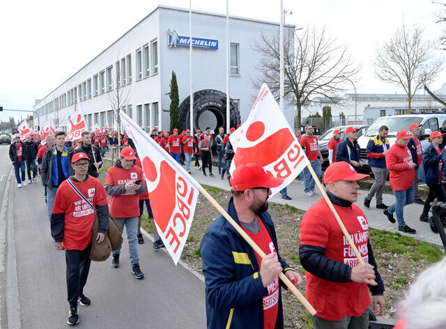 Die Ankündigung von Michelin, Teile der deutschen Unternehmensstandorte bis Ende 2025 zu schließen, zog nicht nur in Homburg/Saar, sondern auch in Karlsruhe Hunderte Beschäftigte auf die Straße. „Mehr als 300, viel mehr als gedacht“, kommentiert Bezirksleiter Karsten Rehbein zufrieden. Ebenso überwältigt zeigte sich Betriebsratsvorsitzender Lukas Kopaczewski: „Es ist absolut wirtschaftlich vernünftig und sozial verantwortlich, wenn Michelin die von IGBCE und Betriebsrat erarbeiteten Alternativkonzepte übernehmen würde“, fordert er. „Mit der Demonstration sendeten die Kolleginnen und Kollegen ein wichtiges Zeichen, dass man die Arbeitsplätze eben nicht so einfach wegradieren kann“, verweist Rehbein auf in Karlsruhe weit mehr als 500 betroffene Jobs.