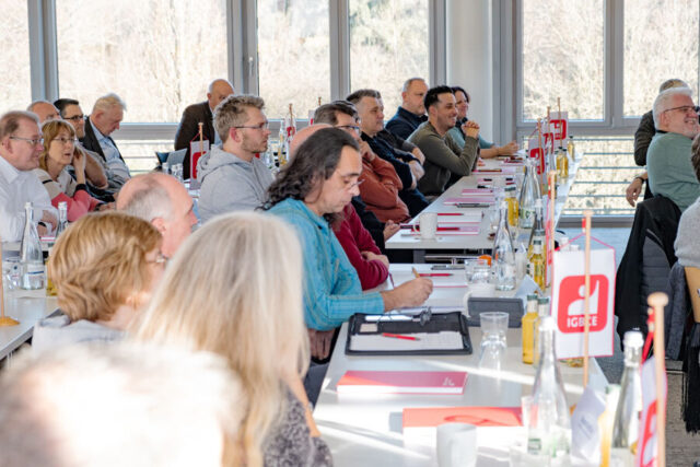 Doch es ging nicht nur darum, zurückzuschauen – mit den Vertrauensleutewahlen und der Chemie-Tarifrunde gab es reichlich aktuellen Gesprächsstoff. Benz und Huber moderierten zwei Workshops, in denen es darum ging, Tarifverträge zukunftsfit und -fest zu machen. Die Gewerkschafterinnen und Gewerkschafter diskutierten zudem, unter Moderation von Gewerkschaftssekretär Kai Königshausen, mit Oliver Heinrich vom geschäftsführenden Hauptvorstand der IGBCE und Boris Weirauch (SPD, Mitglied des Landtags) über die Tarifbindung und die Energiewende im Land.