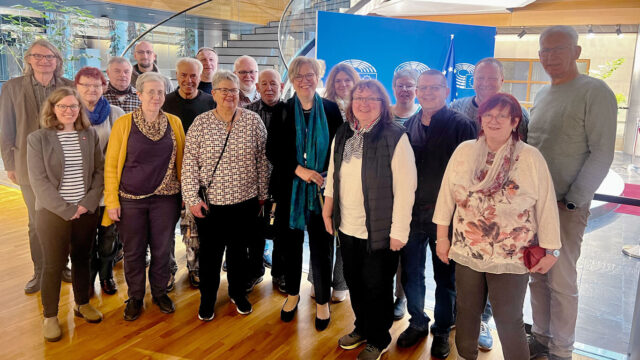 Der Kalender war prall gefüllt: angefangen beim Stadtrundgang in der Grenzstadt Kehl über eine Führung durch das jüdische Straßburg, den Besuch des Europäischen Verbraucherschutzzentrums bis hin zum Kennenlernen von Europarat und Europäischem Parlament. Hier trafen die Kolleginnen und Kollegen die Abgeordnete Gaby Bischoff. Sie setzt sich als Mitglied im Ausschuss für Beschäftigung und soziale Angelegenheiten dafür ein, die Rechte der Beschäftigten europaweit zu stärken, zum Beispiel in Bezug auf bessere Arbeitsbedingungen in der Plattformarbeit, die EU-Mindestlohnrichtlinie und die Stärkung Europäischer Betriebsräte. „Das war ein Austausch auf Augenhöhe“, resümiert Heike Kohr, stellvertretende Vorsitzende des Seniorenarbeitskreises Saarbrücken. „Sie hat auf unsere Fragen als Mensch und nicht als Abgeordnete geantwortet.“ Diskussionspunkte gab es reichlich, insbesondere in Hinblick auf die bevorstehende Europawahl am 9. Juni. Alle wussten um die Bedrohung von rechts und dass die Gefahr bestand, dass einige planten, die demokratische Arbeit des Parlaments zu boykottieren.