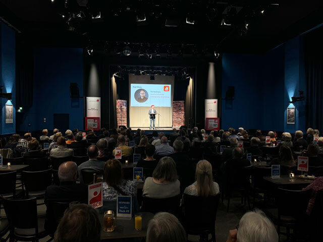 Vor rund 150 Gästen hat Jan Koltze, Leiter des Bezirks Hamburg/Harburg, im Juni in Alma Hoppes Lustspielhaus verdiente Kolleginnen und Kollegen für 25, 40 und 50, 60 und 70 Jahre Mitgliedschaft geehrt. Ein Kollege feierte sogar seine 75-jährige Gewerkschaftstreue. „Ihr alle wisst, was es heißt, Solidarität zu formieren, und wie es ist, diese zu organisieren“, sagte Jan Koltze. „Solidarität ist immer ein Mittel, um die Ziele, für die man steht, zu erreichen.“