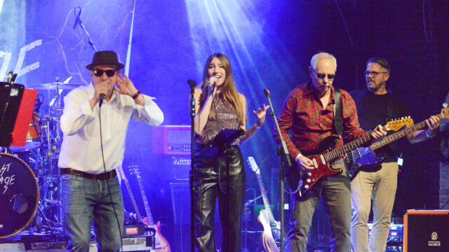 Begeisterten: No Time mit Francesco Grioli, Ann-Sophie Linnartz, Michael Vassiliadis und Markus Köpp (oben, von links). Klein im Bild: Wolfgang Haas (Schlagzeug) und Michael Linnartz (Keyboard).