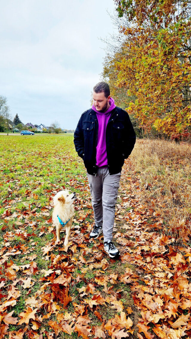 Das macht der junge Mann gern bei Spaziergängen mit seinem aus Rumänien stammenden Straßenhund. Aufgewachsen in einem Hundert-Seelen-Dorf mitten in der Uckermark, wohnt er nun in Schwedt, ein Wegzug kommt für ihn nicht infrage. Er liebt die Nähe zur Natur und findet das Zusammenspiel mit der Industrie interessant.