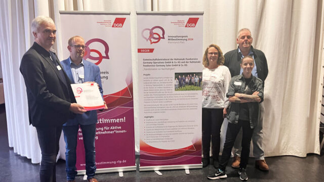 Betriebsratsvorsitzender Dieter Mainzer (ganz links) gewinnt mit seinem Gremium den Innovationspreis Mitbestimmung.