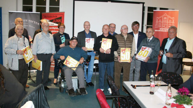 Den insgesamt 51 Jubilarinnen und Jubilaren gelte besonderer Dank für ihr jahrzehntelanges Engagement und Vertrauen. „Wir ehren damit diejenigen unter uns, die durch ihre langjährige Mitgliedschaft und ihre unermüdliche Unterstützung das Rückgrat unserer Gewerkschaft und somit auch der Ortsgruppe selbst bilden.“ Insbesondere gilt das für Heinz Britz, der vor siebzig Jahren in die Gewerkschaft eintrat, und für Eduard Hoffmann, der sein 75-jähriges Jubiläum feierte.
