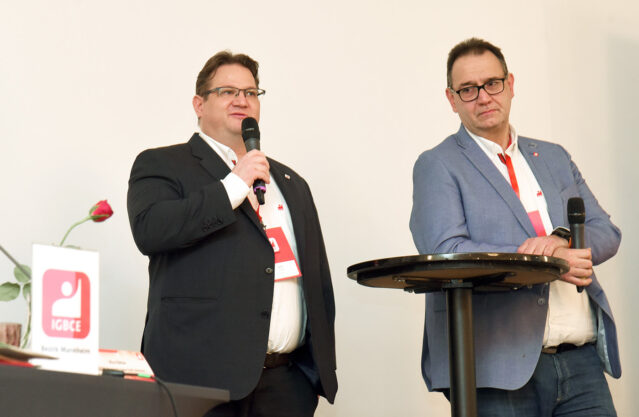 Ein großes Thema für die rund siebzig Delegierten und Gäste im Bezirk Karlsruhe war die Unterstützung und die Förderung der Energietransformation. Dies machte der Leitantrag von 27 Anträgen deutlich. Er betonte besonders die Auswirkungen nicht nur in technischer, sondern auch in sozialer Hinsicht auf die Beschäftigten. Die Umstellung auf erneuerbare Energien müsse mit der Schaffung neuer, sicherer Arbeitsplätze einhergehen und dürfe nicht auf dem Rücken der sozial schwächeren Bevölkerungsteile ausgetragen werden, war die Kernforderung.