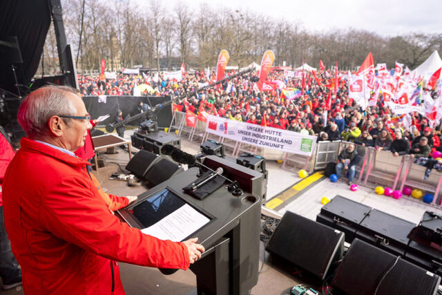 Der lautstarke Radau war volle Absicht: Die Beschäftigten wollten damit ein klar vernehmbares Zeichen in Richtung Bundespolitik senden, wie wichtig es jetzt ist, die Industrie – Deutschlands wichtigsten Wohlstandsgaranten – wieder auf Kurs zu bringen, den Abbau von Industriejobs zu stoppen und massiv in die Modernisierung des Standorts D zu investieren. Um die Demonstrierenden in den fünf Städten immer wieder miteinander zu vernetzen, gab es zahlreiche Schaltungen zwischen den Veranstaltungen, unter anderem wurde eine La-Ola-Welle von Standort zu Standort geschickt.