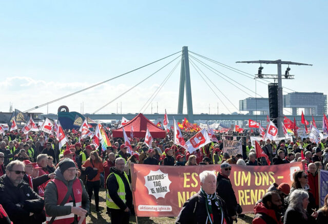 Fünf Städte – eine Botschaft: Bei den Demonstrationen am Aktionstag sendeten rund 10.000 IGBCElerinnen und IGBCEler ein lautstarkes Zeichen an die künftige Bundesregierung. Für zukunftssichere Arbeitsplätze in der Industrie, für eine Modernisierung des Industriestandorts Deutschland und für eine faire Kostenverteilung.