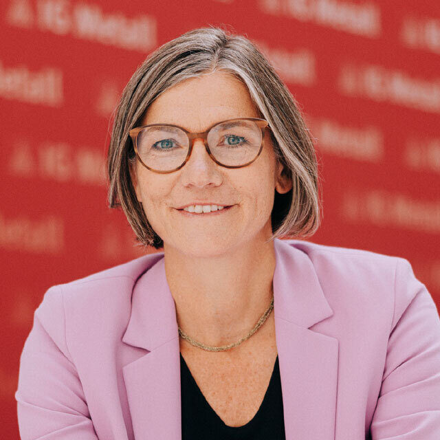 Christiane Benner, geboren 1968, ist seit Oktober 2023 erste Vorsitzende der größten deutschen Industriegewerkschaft IG Metall. Die gelernte Fremdsprachenkorrespondentin und Diplom-Soziologin startet ihre gewerkschaftliche Laufbahn 1997 in der Verwaltungsstelle Frankfurt. Im Jahr 2000 übernimmt sie die Leitung des Bezirks Niedersachsen und Sachsen-Anhalt. Einer ihrer Schwerpunkte ist die Tarifpolitik. 2011 wird sie in den geschäftsführenden Vorstand der IG Metall berufen und 2015 zur zweiten Vorsitzenden gewählt.