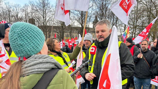 Mehr als 80.000 Beschäftigte sind am 15. März in bundesweit fünf Städten auf die Straße gegangen und haben lautstark für die Zukunft ihrer Industriearbeit gekämpft. Auch zahlreiche Kolleginnen und Kollegen aus dem Landesbezirk Nord wie Volker Neumann aus Wilhelmshaven (Foto) sind dem Aufruf von IGBCE und IG Metall nach Hannover gefolgt. Im Georgengarten forderte der IGBCE-Vorsitzende Michael Vassiliadis den Erhalt von Industriearbeitsplätzen und einen „Turnaround für die Industrie“.