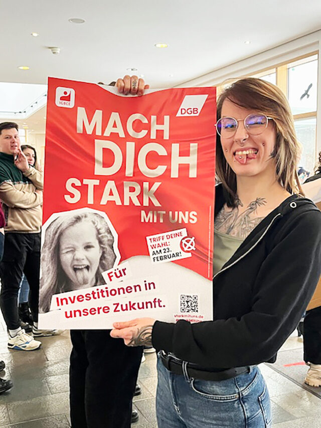 Wie etwa die Erhaltung und die Stärkung der Demokratie. In einem Antrag, der einstimmig in Kagel angenommen wurde, hieß es: Überall dort, wo Kolleginnen und Kollegen aktiv in Entscheidungsprozesse eingebunden werden, wächst das Bewusstsein für demokratische Werte wie Respekt, Toleranz und Antifaschismus. Das sichert nicht nur faire Arbeitsbedingungen, sondern stärkt auch die parlamentarische Demokratie in Deutschland und in der Europäischen Union.