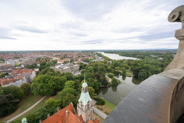 Hannovers Wahrzeichen, erbaut 1913. Besuchende fahren mit dem Schrägaufzug in die Kuppel und genießen einen Panoramablick über die Stadt – und sie lernen an vier Modellen viel über die Stadtentwicklung.