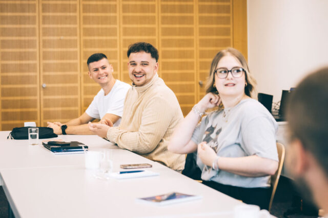 Dem Junggewerkschafter Kerwel hat besonders das Drehen der „Fakt oder Fake“-Videos, auf Tiktok gerade ein beliebtes Format, Spaß gemacht. Er freut sich schon darauf, die vom Team geschnittenen Kurzvideos bald sehen zu können – und sie dann auf seinem Kanal in die Welt zu schicken. „Gewerkschaft ist wichtig, wir brauchen eine starke Stimme – und da müssen alle mithelfen, auf allen Kanälen“, sagt er. Kerwel ist gespannt auf das Feedback im Netz. Und wie hatte Referent Holtmann schon bei der Einleitung gesagt: „Wir wollen den Daumen aufhalten.“ Bei Tiktok bedeutet das: die Nutzenden davon abhalten, mit dem Daumen zum nächsten Video zu wischen.