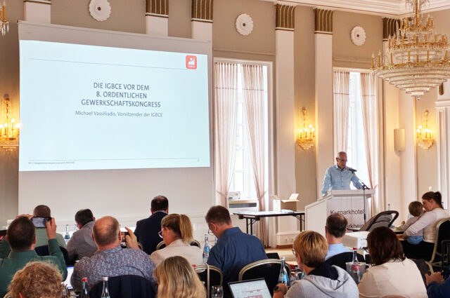 Weit mehr als 500 Anträge waren es, die auf dem Tisch von Stephan Güldner, Vertrauensleutevorsitzender der BASF SE, landeten. Erstmals ist er Mitglied der Antragskommission (AK) auf Kongressebene. „Auch wenn wir zehn Antragskommissionsmitglieder uns alle nicht kannten, haben wir uns schnell auf der gemeinsamen Arbeitsebene gefunden“, lobt er. Mit allen Mitgliedern des Hauptvorstands sind sie das Paket durchgegangen. Anträge mit ähnlichen Inhalten habe man zusammengeführt und landete so bei jetzt knapp 500. „Dabei haben wir jeden Antrag mit der gleichen Wertigkeit behandelt, denn jeder einzelne hat seine Daseinsberechtigung“, betont Güldner. „Das ist mir wirklich wichtig, zu sagen.“