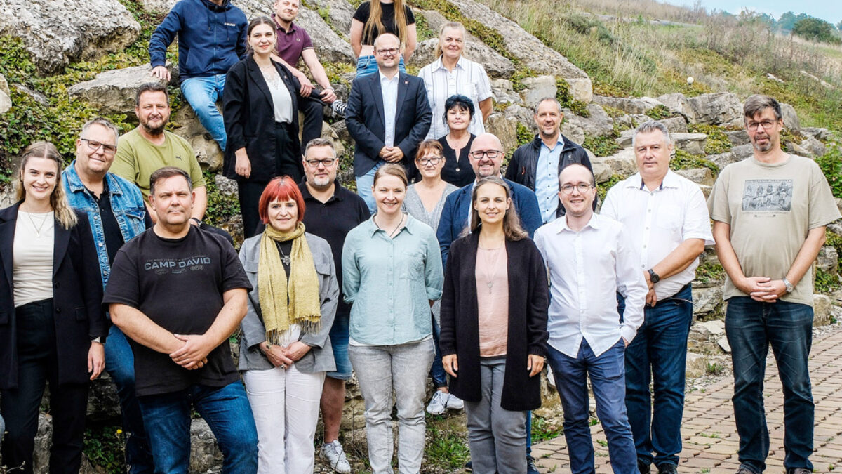 Der neue Bezirksvorstand mit Vertreterinnen und Vertretern aus dem ehemaligen Leipziger Bereich (erste Reihe links außen: Bezirksleiter Norman Friske).