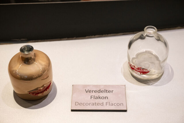Damit ein Flakon in die Ausstellung kommt, muss er vor allem eines sein: ein Hingucker. Daneben zählt der Hersteller, die Veredelung und der historische Bezug. „Es ist nicht Sinn der Sache, dass das Museum aussieht, als laufe man durch eine Parfümerie“, sagt Welsch. „Unser Fokus liegt auf Kosmetik- und Medizinalflakons, denn lange war Parfum auch Medizin und wurde getrunken.“