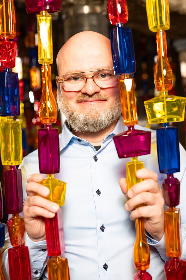 Fiedler arbeitet seit 2022 für das Museum. Er sammelt auch privat Duftflakons. Mehr als dreißig Stück hat er bereits. Sein Badschrank zu Hause ist voll. Weitere stehen im Büro. Das teilt er sich mit seinem Chef, Museumsleiter Sandro Welsch.