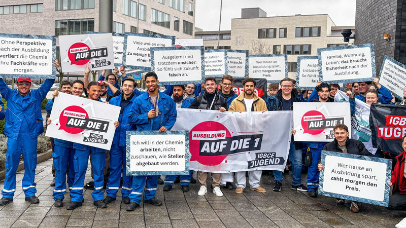 Zum Auftakt der regionalen Verhandlungsrunden in Köln (Foto) und Bochum hat die IGBCE-Jugend lautstark auf ihre Forderungen aufmerksam gemacht.