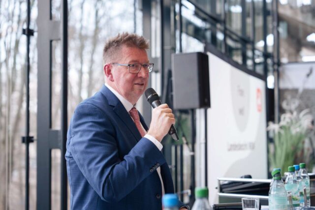 Auch aus der Landespolitik kam ein klares Signal. Karl-Josef Laumann, Minister für Arbeit, Gesundheit und Soziales des Landes Nordrhein-Westfalen, sprach über Arbeit und Sozialpartnerschaft in Nordrhein-Westfalen und betonte die Bedeutung eines verlässlichen Dialogs zwischen Politik, Gewerkschaften und Betrieben. Gerade in Zeiten tiefgreifender industrieller Veränderungen brauche es Verlässlichkeit und Gesprächsbereitschaft auf allen Seiten. „Sozialpartnerschaft heißt, auch in schwierigen Phasen miteinander im Gespräch zu bleiben. Das hat Frank Löllgen immer eingefordert – und genau das brauchen wir für Nordrhein-Westfalen weiterhin“, sagte der Minister.