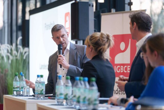Den Blick nach vorn richteten Markus Steilemann, Präsident des Verbands der Chemischen In-dus-trie, sowie Mona Neubaur, stellvertretende Ministerpräsidentin des Landes Nordrhein-Westfalen. In ihrem Input betonte Neubaur das gemeinsame Ziel, Arbeitsplätze zu sichern, neue Investitionen zu ermöglichen und den Wandel hin zu einer klimaneutralen Indus-trie so zu gestalten, dass er den Menschen – auch den nächsten Generationen – nutzt. Dafür brauche es jetzt auch klare Unterstützung aus Berlin und Brüssel. Neubaur: „Nordrhein-Westfalen ist und bleibt ein starkes Chemieland. Mir ist wichtig, dass Politik, Unternehmen und Gewerkschaften weiterhin eng und vertrauensvoll zusammenarbeiten. Gute Arbeit, Mitbestimmung und faire Tarifverträge gehören dabei fest dazu.“