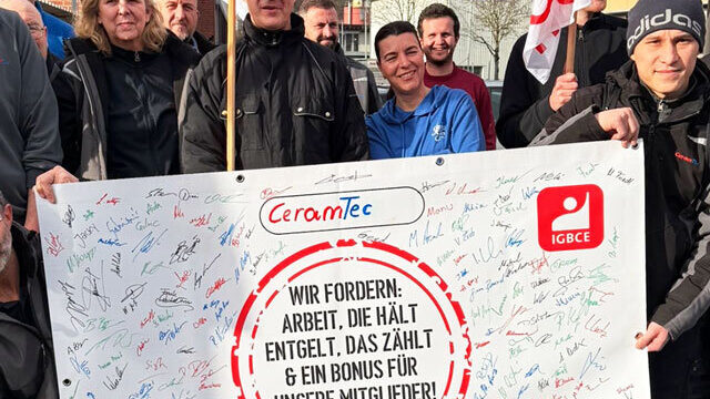 Mit einer Unterschriftenaktion hatte die IGBCE ein starkes Zeichen gesetzt: Tausende Beschäftigte in Dutzenden Betrieben hatten mit ihren Unterschriften deutlich gemacht, dass sie die Forderungen der Gewerkschaft unterstützen. Schlussendlich habe auch das Eindruck auf die Arbeitgeber gemacht und den Druck erhöht.