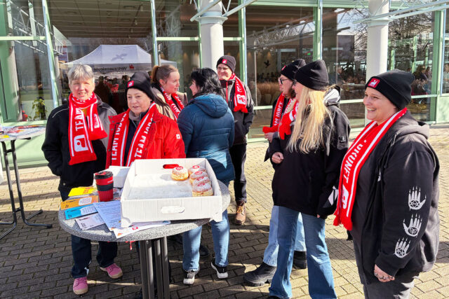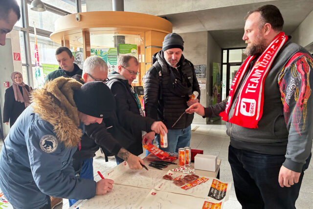 Auch Ceramtec-Beschäftigte (oben und unten) beteiligten sich bei der bundesweiten Unterschriftenaktion im Vorfeld der Tarifrunde.