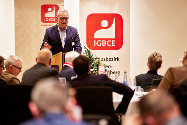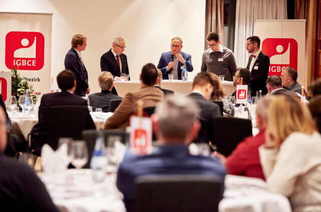 Festredner und IGBCE-Vorsitzender Michael Vassiliadis betonte sein Verständnis der in der Chemiebranche etablierten Sozialpartnerschaft: „Wir verstehen diese nicht als Anhängsel von Kostenmanagement, sondern als demokratisches Prinzip der Teilhabe – im Aufschwung wie in der Krise“, sagte er mit Blick auf die aktuelle wirtschaftliche Situation. Die Zukunft guter Arbeit hänge an Haltung und an Verantwortungsbewusstsein auf beiden Seiten des Verhandlungstischs. „Darum erwarten wir von den Arbeitgebern, dass sie sich dieser Verantwortung stellen. Nicht mit Lippenbekenntnissen, sondern mit gemeinsamen Konzepten für sichere Beschäftigung, für Qualifizierung und für Investition in Zukunft.“