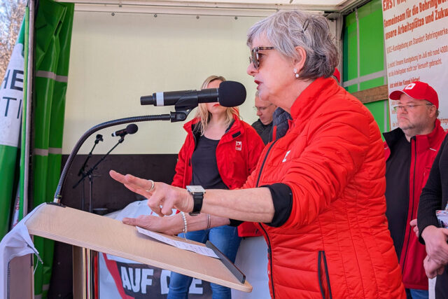 „Es reicht“, sagte Anne Weinschenk, Bezirksleiterin Mittelhessen. „Wir lassen nicht zu, dass die Arbeitgeber den Standort kaputt machen!“ In Bezug auf die Pläne von CSL Behring, rund 15 Prozent der Belegschaft – das entspricht etwa 400 Stellen – abzubauen, hob sie hervor: „Es gibt dazu keine wirtschaftliche Notwendigkeit. Das ist pure Gier, pure Willkür. Wir stehen hier, um den Arbeitgebern zu sagen: Nicht mit uns!“