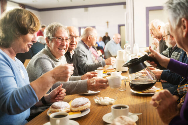 Der Kreppelkaffee ist mittlerweile mehr als ein nettes Treffen – er ist eine Institution. Die Premiere hatte er vor 16 Jahren, am 2. Februar 2010. Damals war der Seniorenarbeitskreis erst ein paar Monate alt. Die IGBCE und motivierte Ruheständlerinnen und Ruheständler in Höchst, einem Stadtteil von Frankfurt am Main mit 16.000 Einwohnerinnen und Einwohnern, hatten den Grundstein dafür gelegt. „Die IGBCE bot uns an, sich für Seniorinnen und Senioren zu engagieren – und Peter Dauster ist sofort darauf eingegangen“, erinnert sich Arnold.